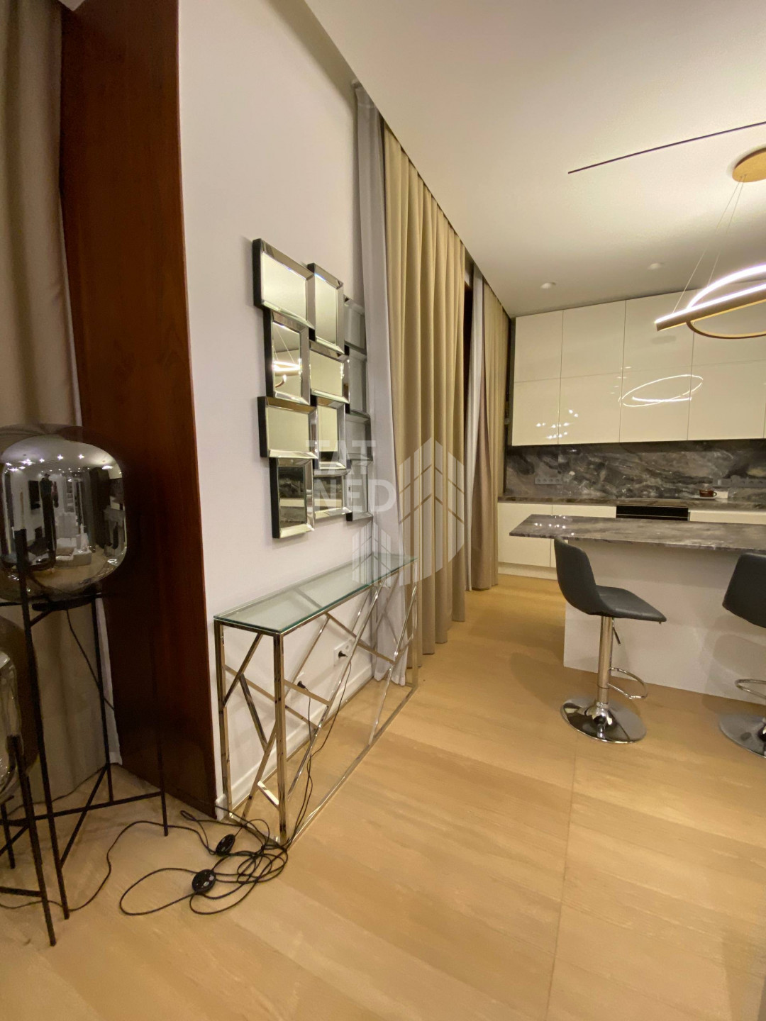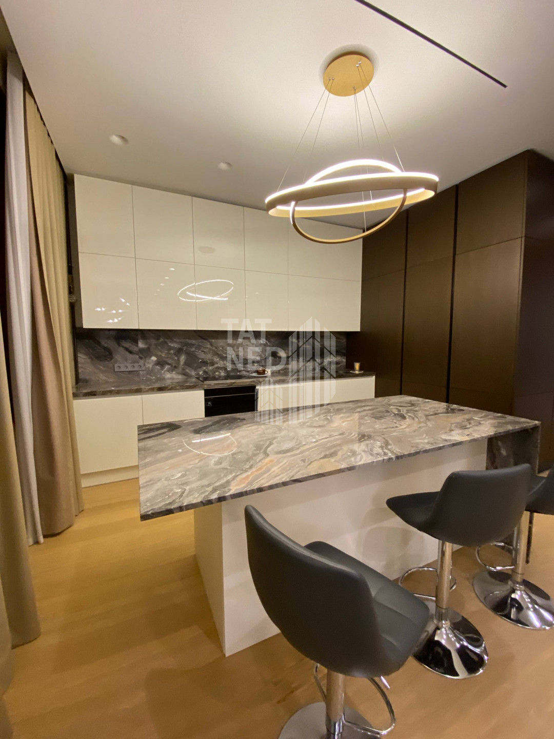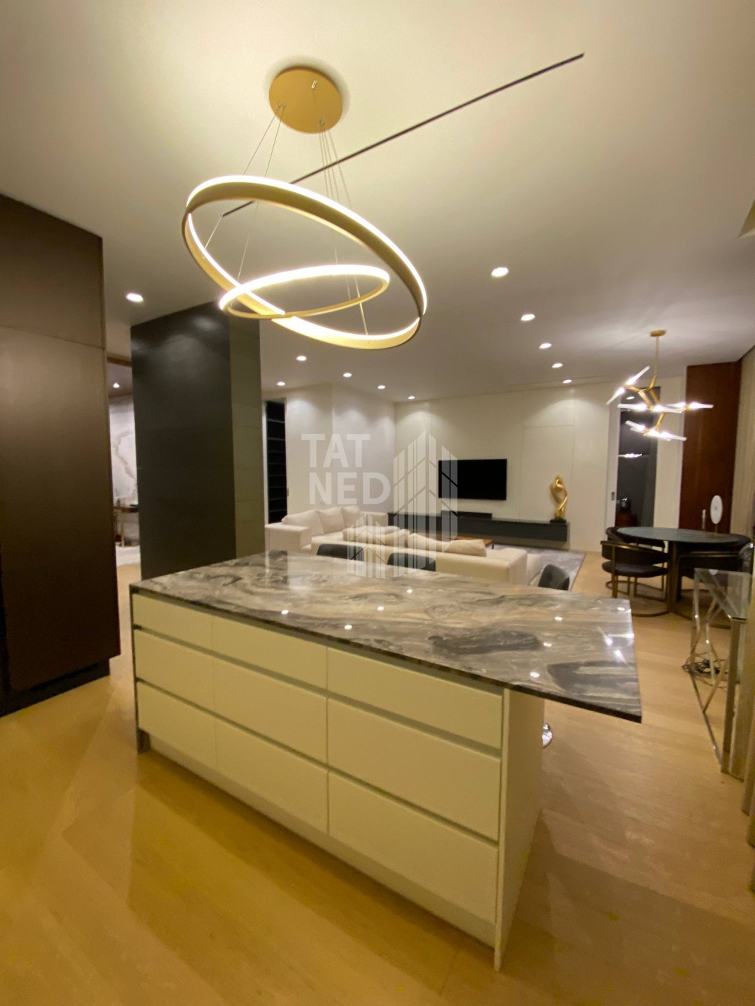 Вас ждет безупречный дизайнерский ремонт, выполненный из дорогих материалов, который создает атмосферу роскоши и уюта. Квартира включает просторную кухню-гостиную для встреч с близкими, две стильные ванные комнаты, функциональную гардеробную и уютную спальню с большой кроватью и прекрасным видом из окна, который будет радовать вас каждый день. Эта квартира – воплощение комфорта и высокого статуса. Подземный паркинг.