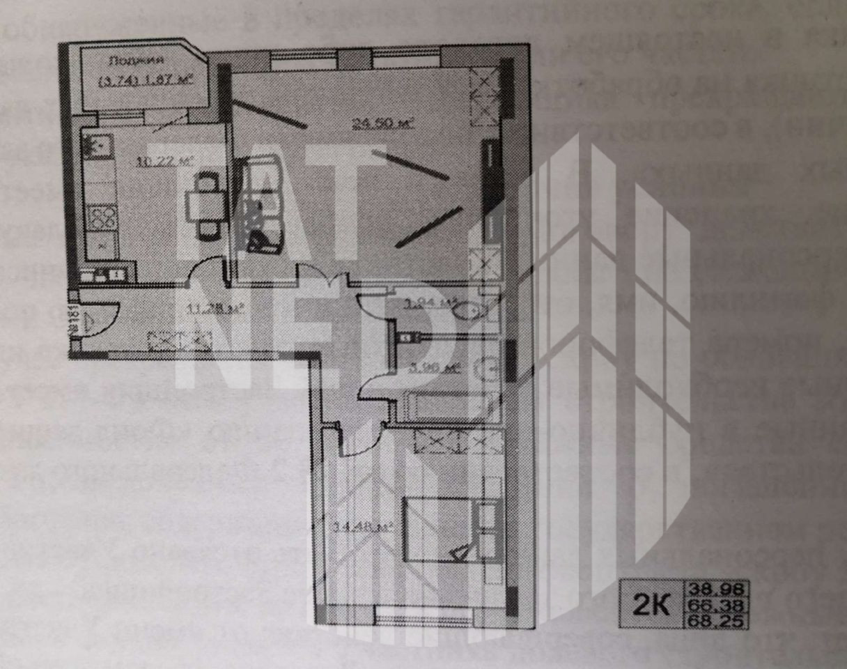Жилая площадь: 38,98 м²