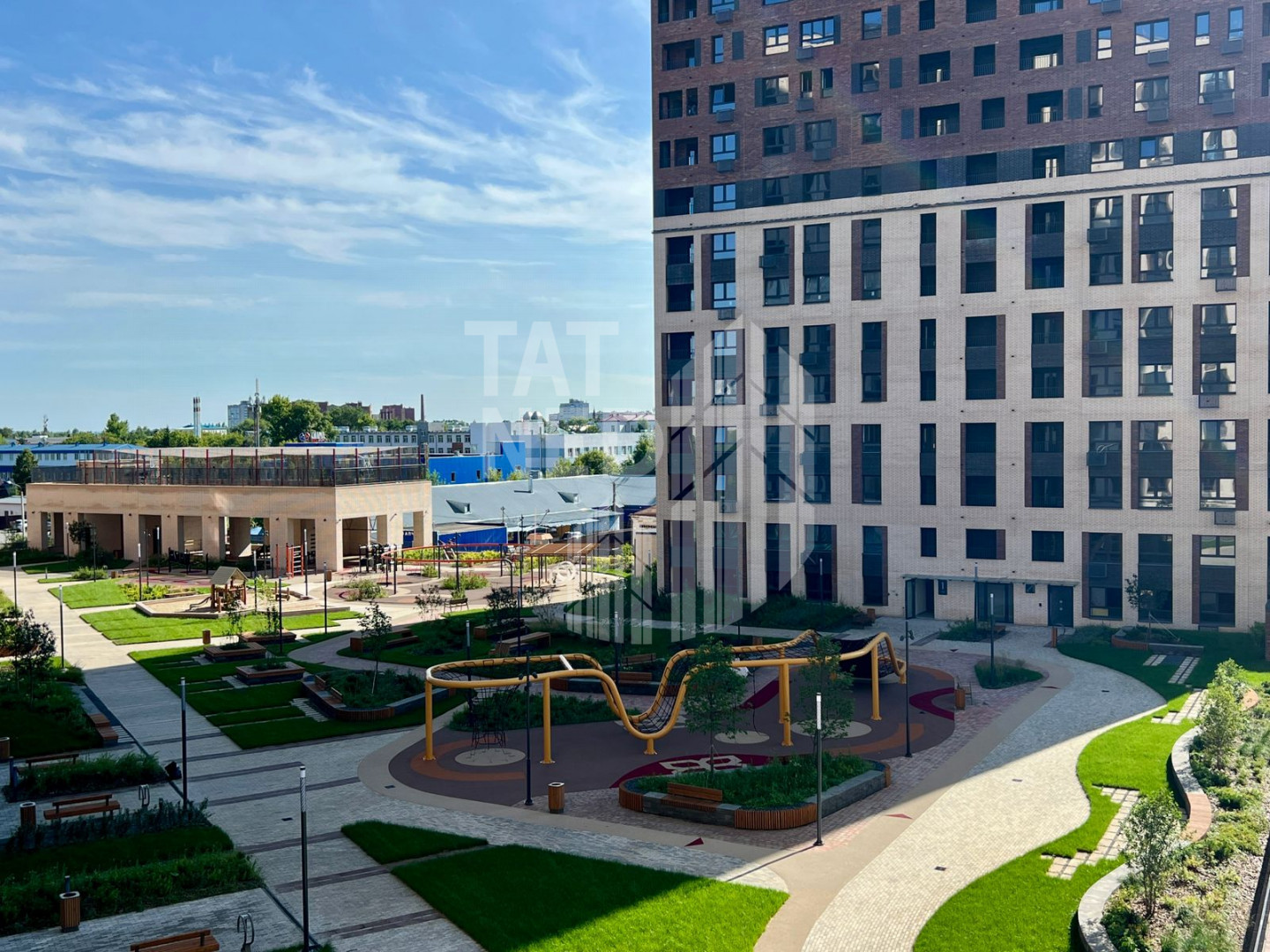 - обустроенный двоp-пaрк с различными видами активностей как для детей, так и для взрослых, включая тренажерный зал; зоны воркаут и многофункциональное игровое поле с атравматичным покрытием