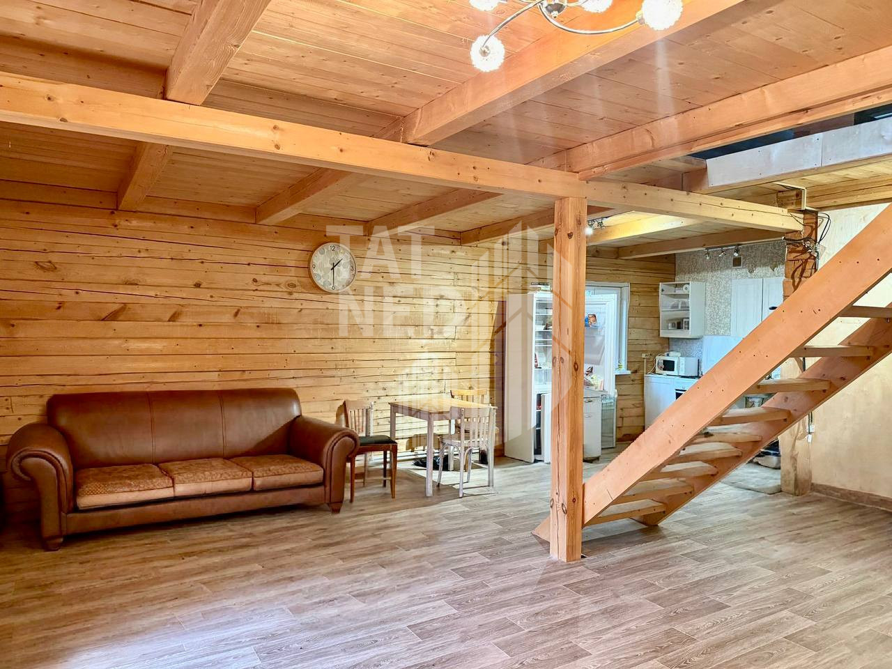Деревянная лестница с выходом на второй этаж.