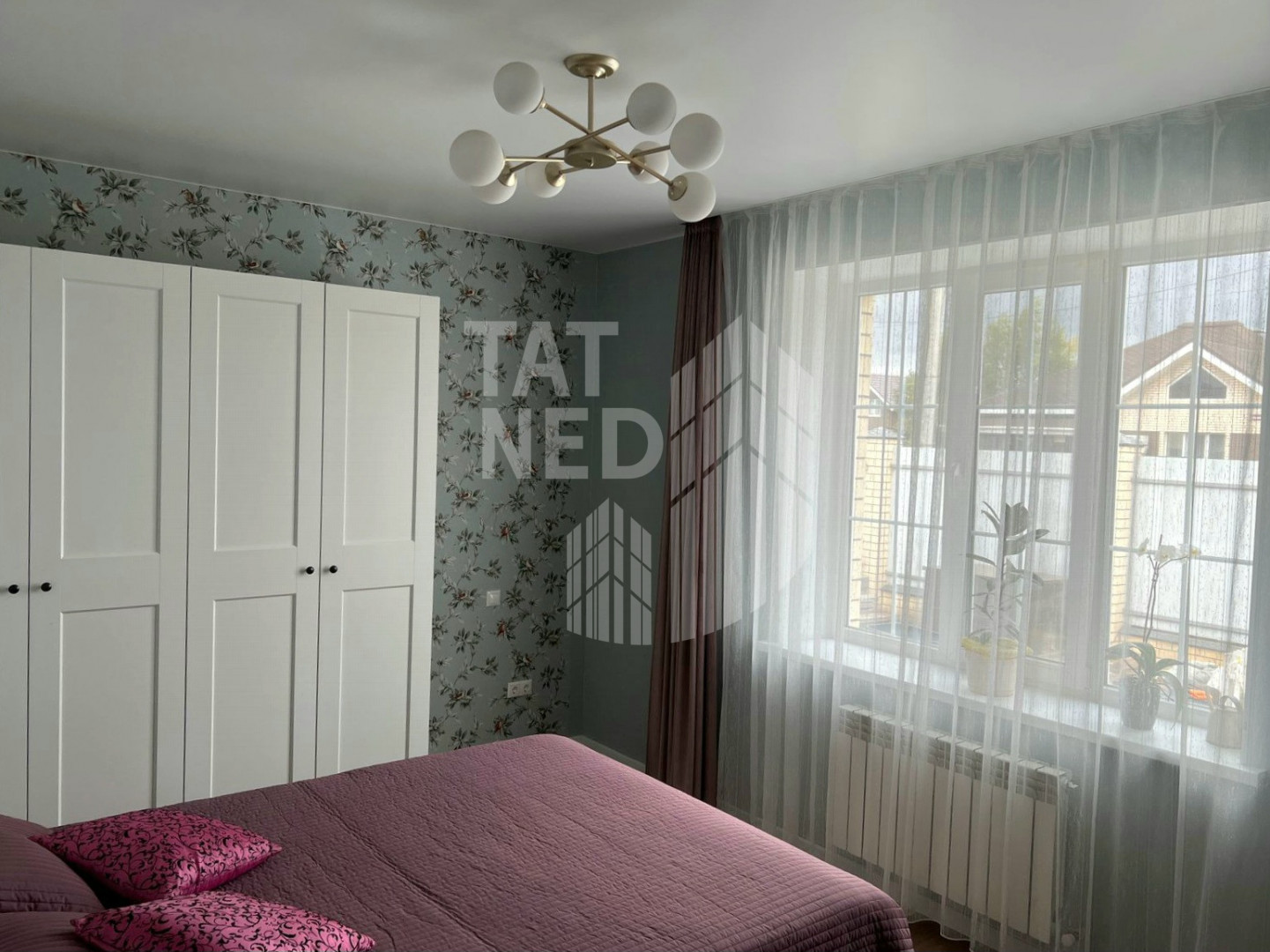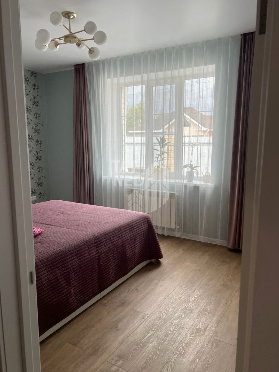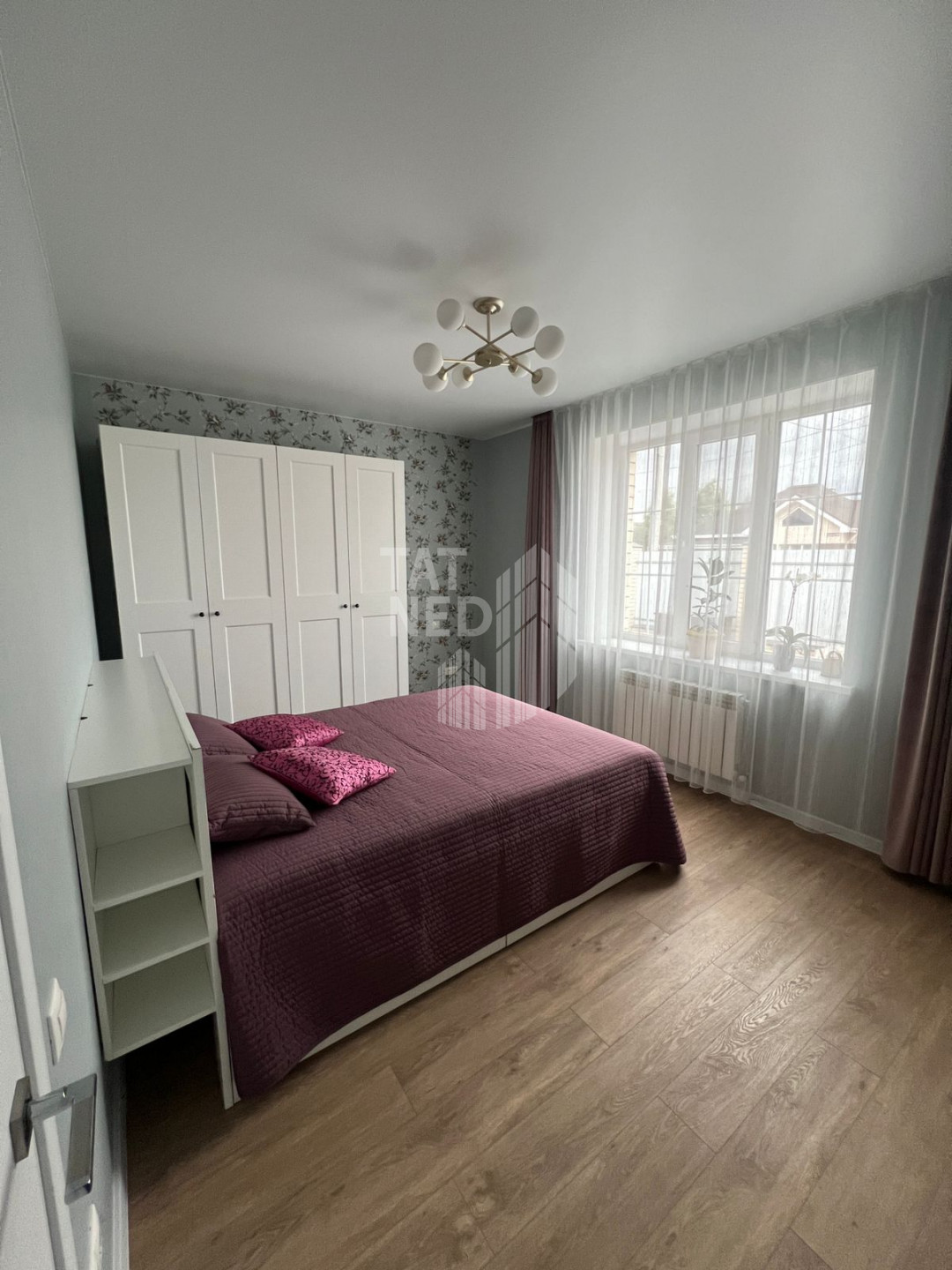 Дом имеет продуманную и эргономичную планировку, которая включает в себя: 3 кoмнаты, большую кухню-гостиную, совмещенный cанузел, кладовую (гардеробную), холл и тepраcу. Обнесен забором по периметру. При строительстве и ремонте использовались качественные современные материалы: мебель и обои под заказ, на полу кварцвинил.