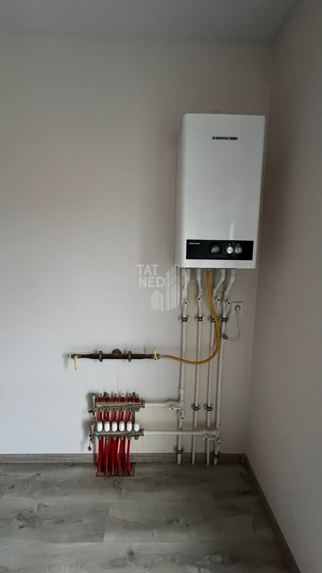 Во всех комнатах стоят радиаторы отопления. По всему дому теплый пол. Также стоит двух контурный котел, который отапливает весь дом и подает горячую воду. Вода своя (скважина 105 м).