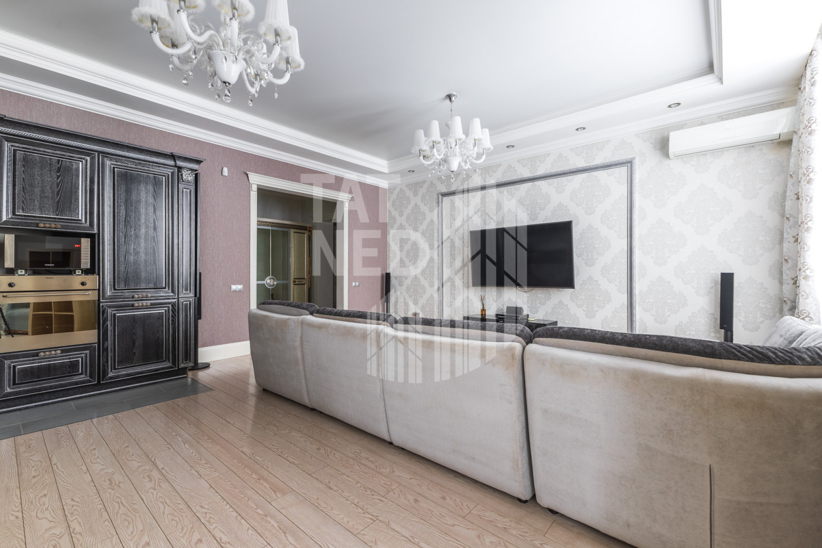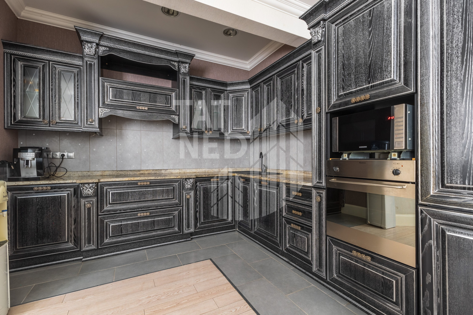-вся мебель выполнена из массива дерева итальянского производства, техника и сантехника премиальных марок