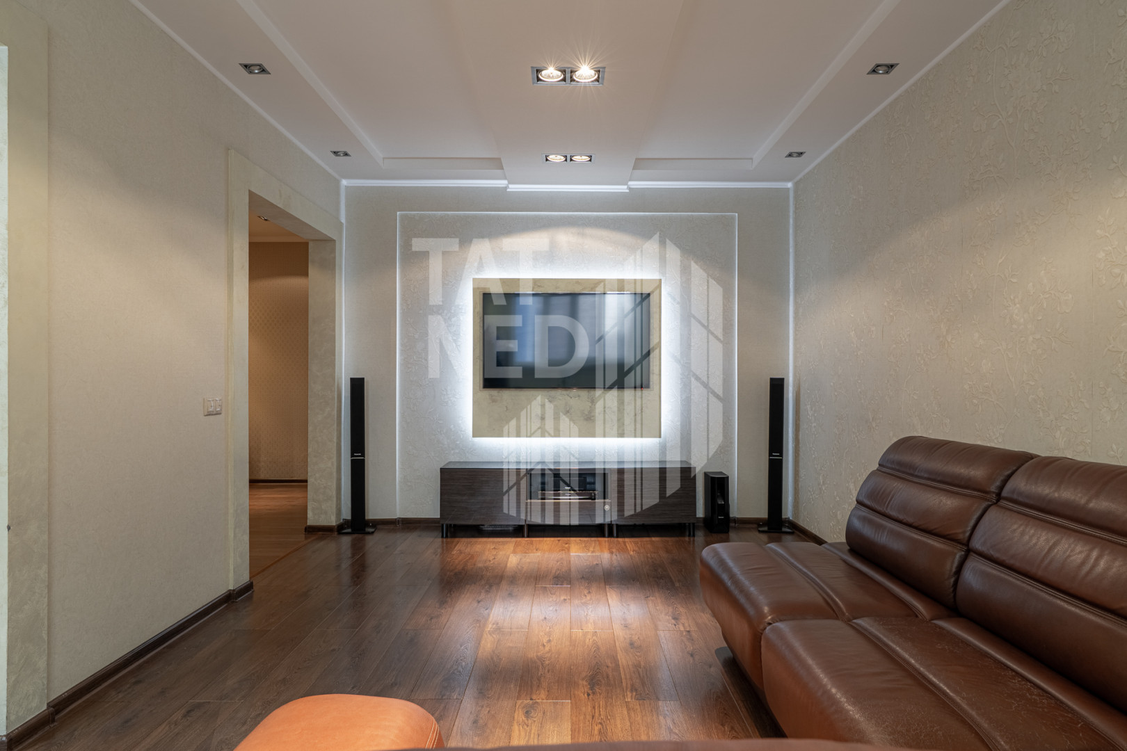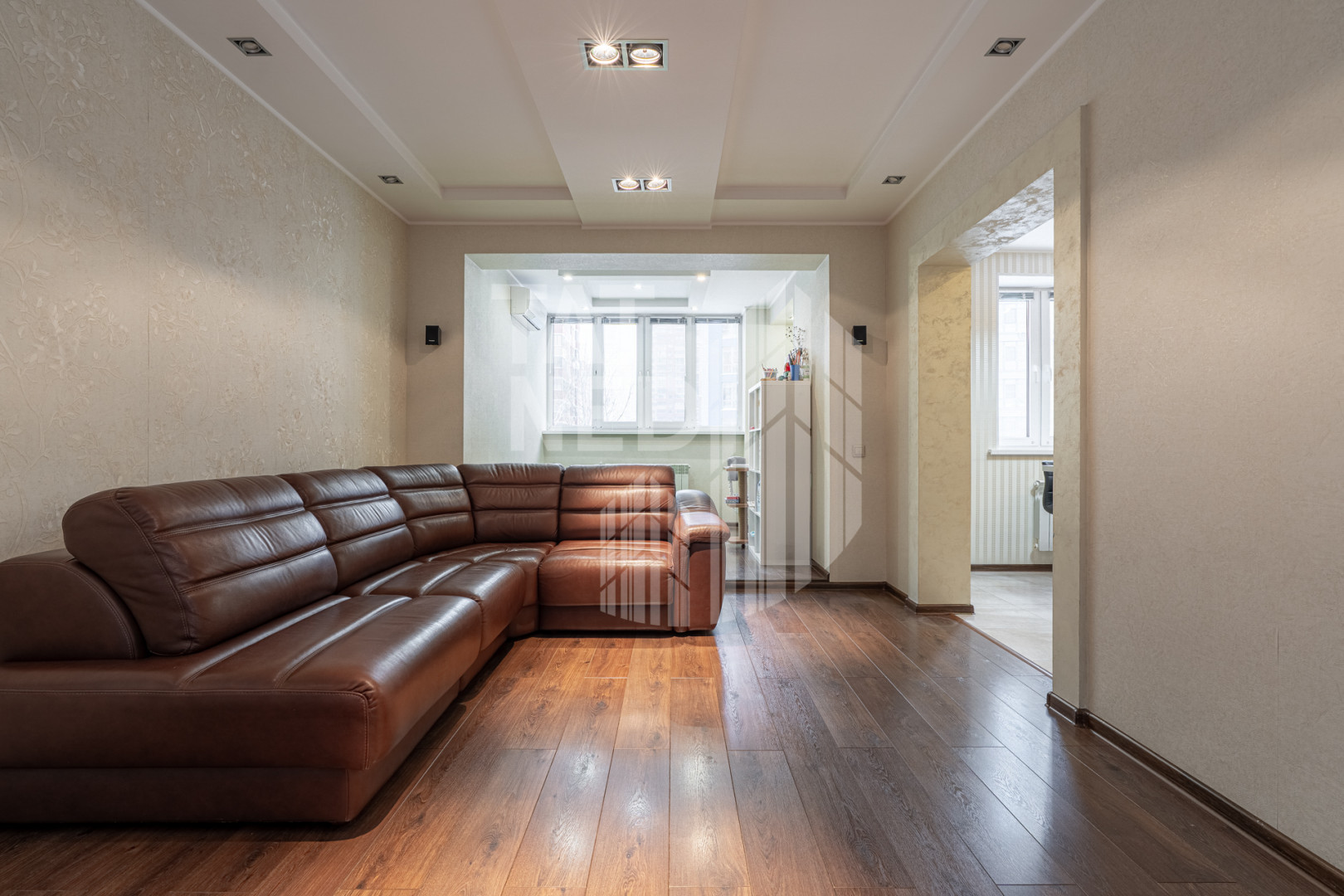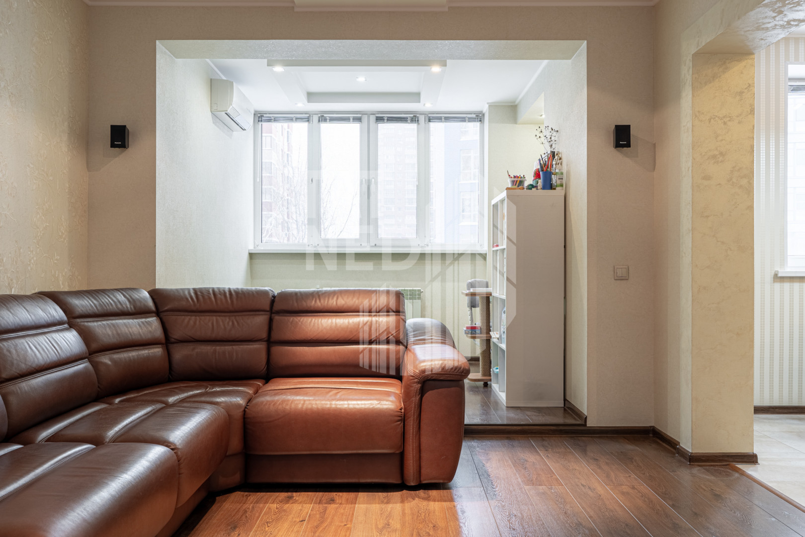 - имеет продуманную, функциональную планировку : просторная кухня-гостиная с отдельно выделенной зоной, которую можно использовать в качестве обеденной, зимнего сада, детской зоны, 2 изолированные спальные комнаты, встроенные системы хранения (2 гардеробные комнаты + собственное подсобное помещение на лестничной площадке), утепленный вместительный балкон с возможностью использования под полезную площадь