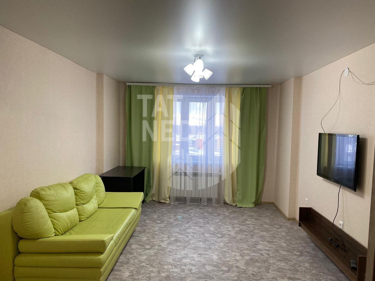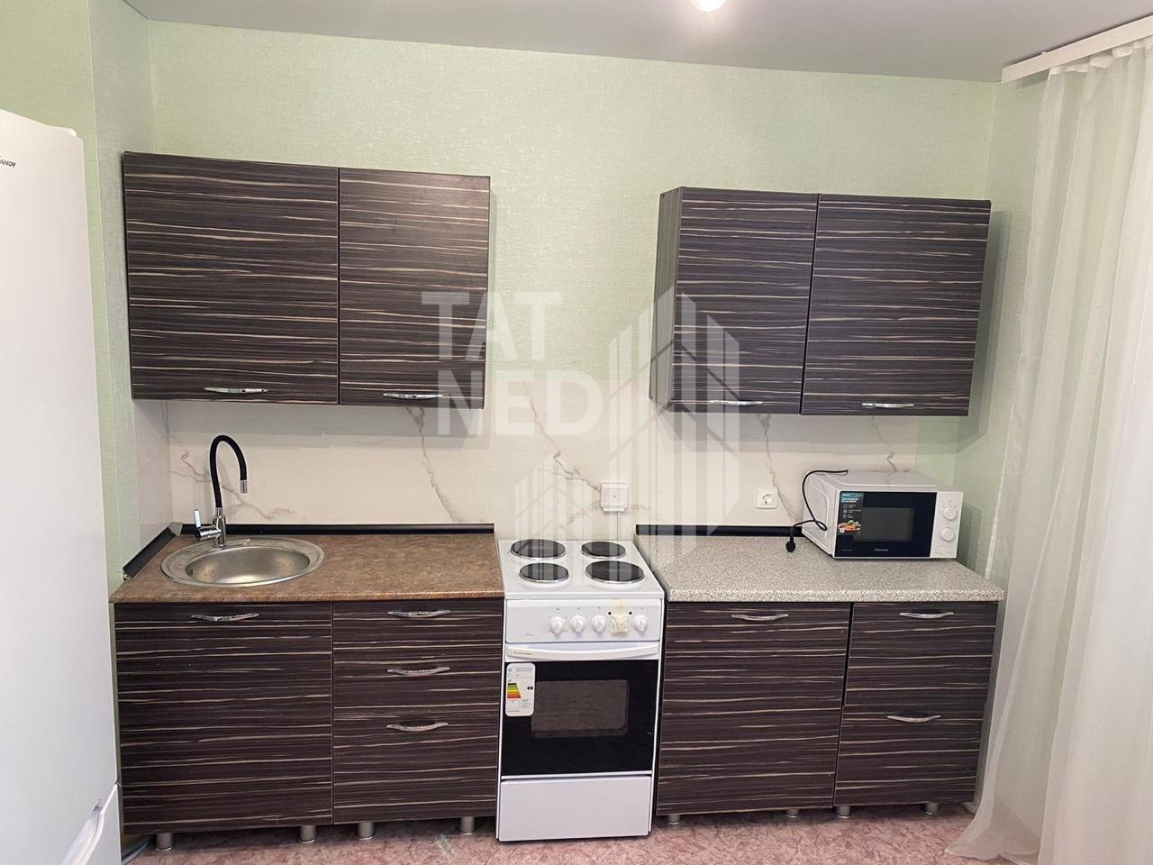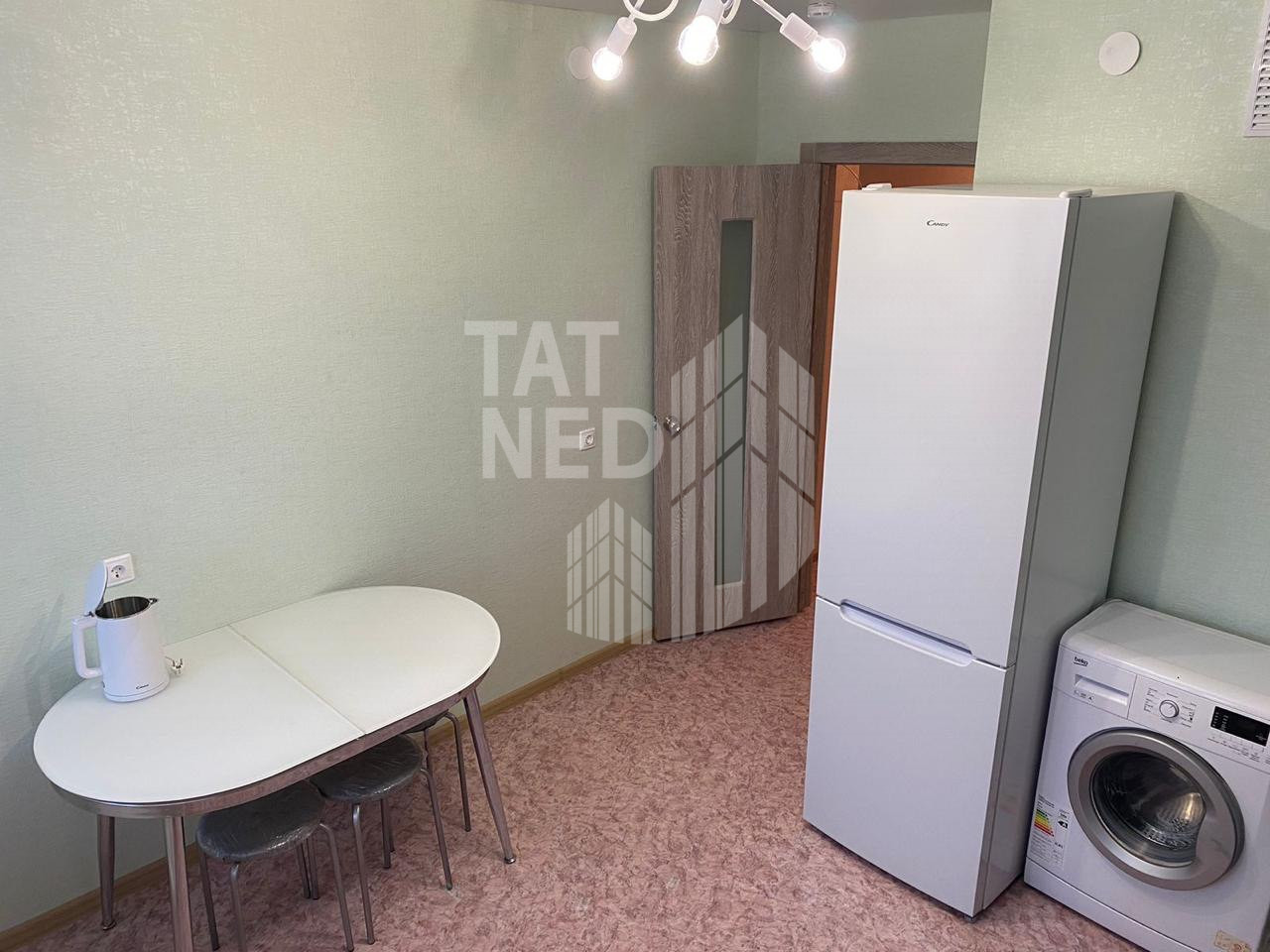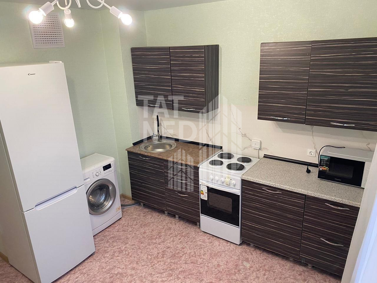 В квартире имеется все для жизни – мебель, стиральная машина, кухня, диван, кровать, телевизор.