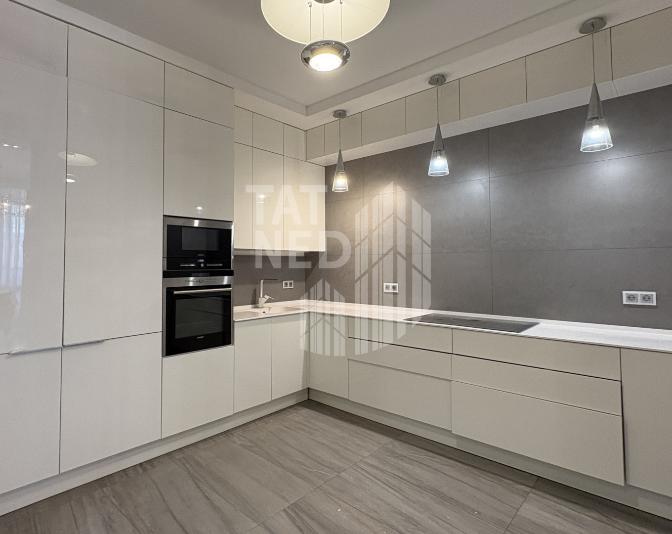 Остается вся техника: стиральная машина, посудомоечная машина, микроволновая печь, духовка SIEMENS, 2 встроенных холодильника LIEBHERR