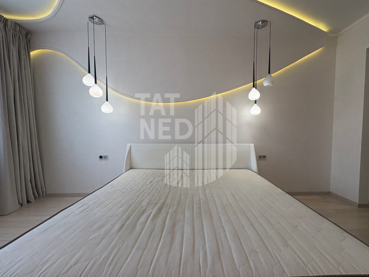 в спальне родителей итальянская кожаная кровать.