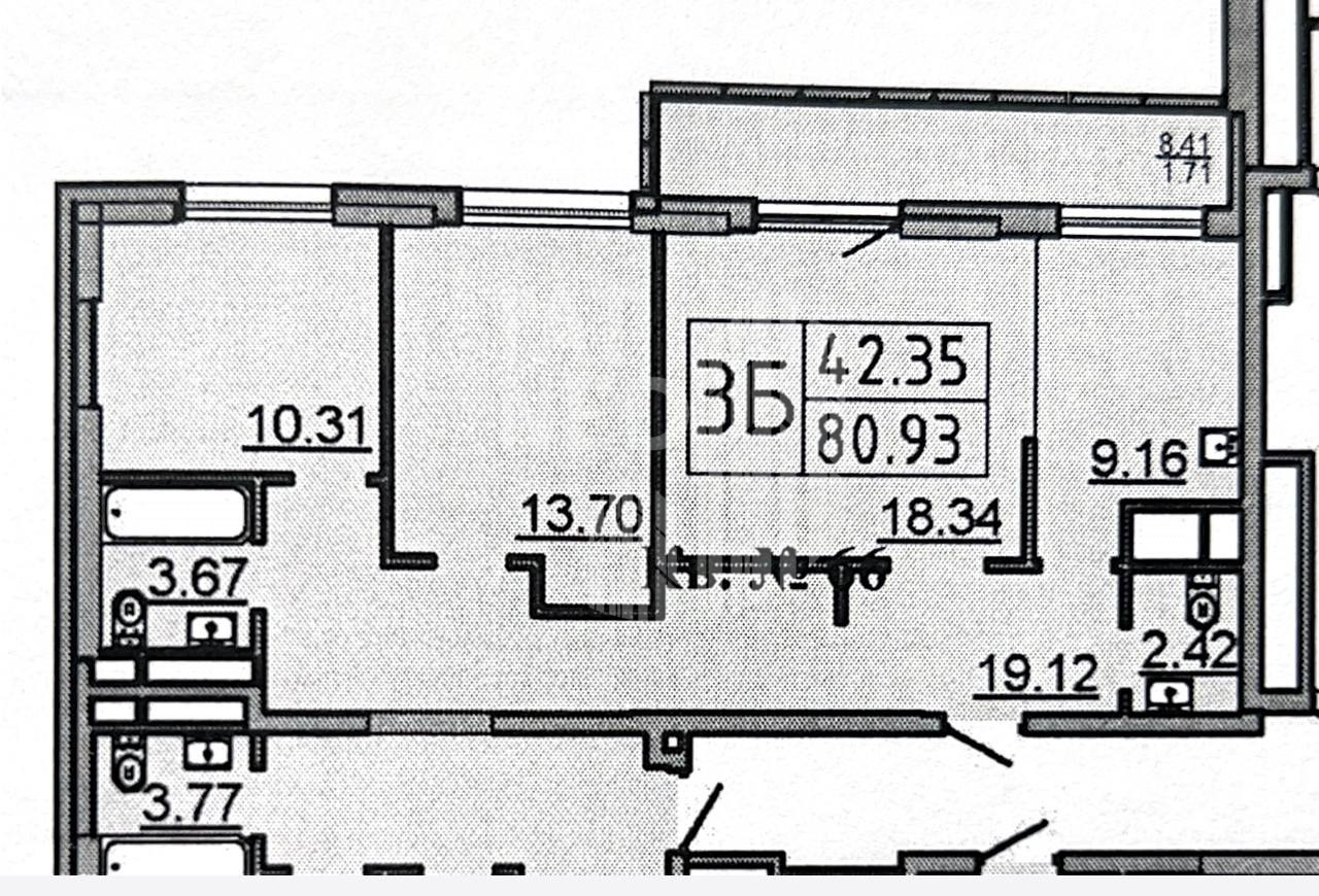 В квартире предчистовая отделка, две спальни, совмещенные кухня и зал (можно разъединить-по желанию), два сан узла, просторный балкон. Квартира граничит с соседями только по одной стене коридора (видно на планировке)- большой плюс. Шикарный 12 этаж.