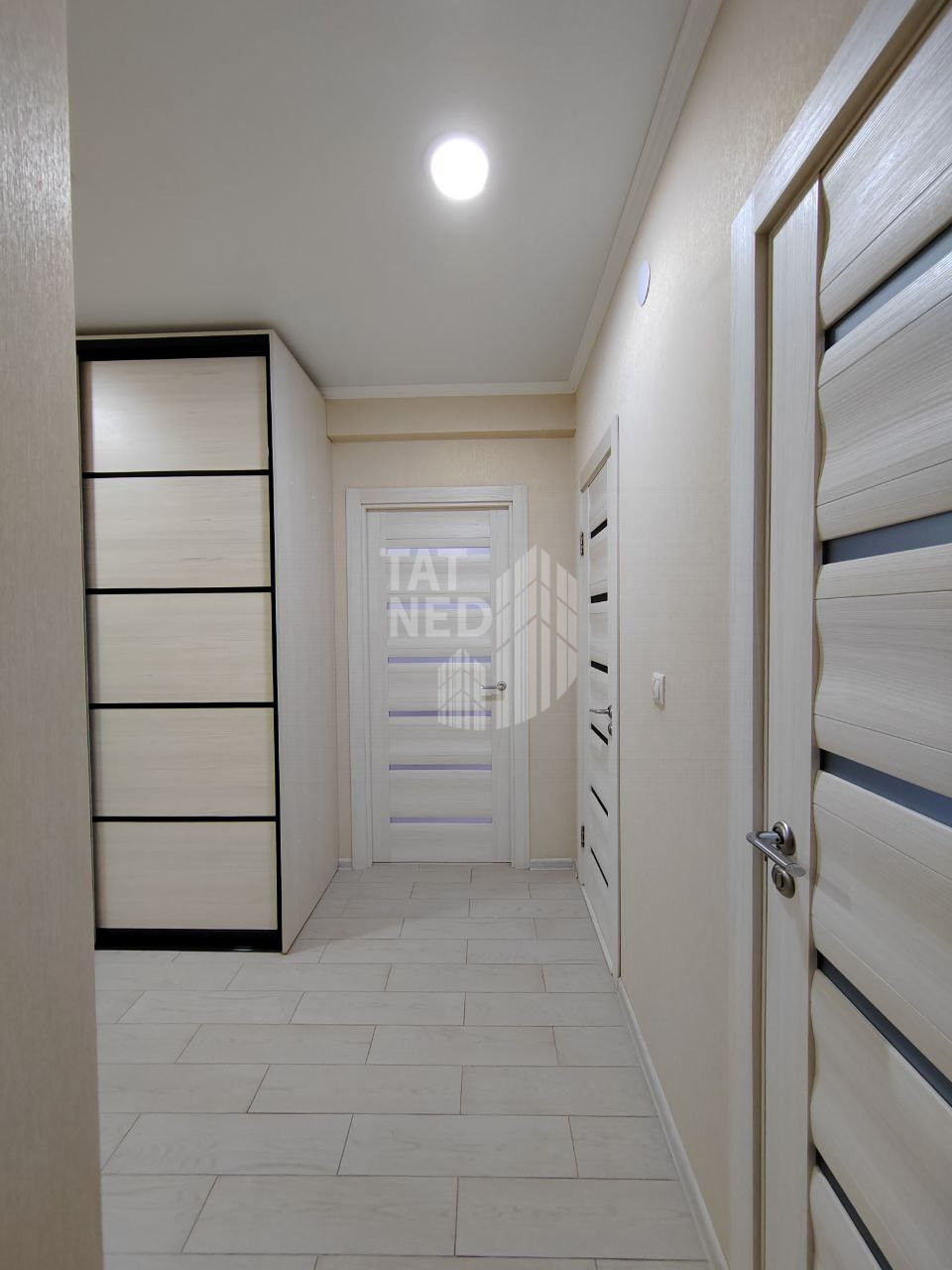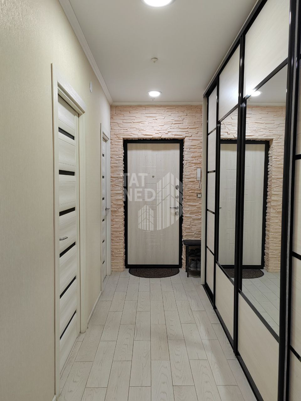 В коридоре установлен большой шкаф-купе, который вместит все ваши вещи и поможет поддерживать порядок.