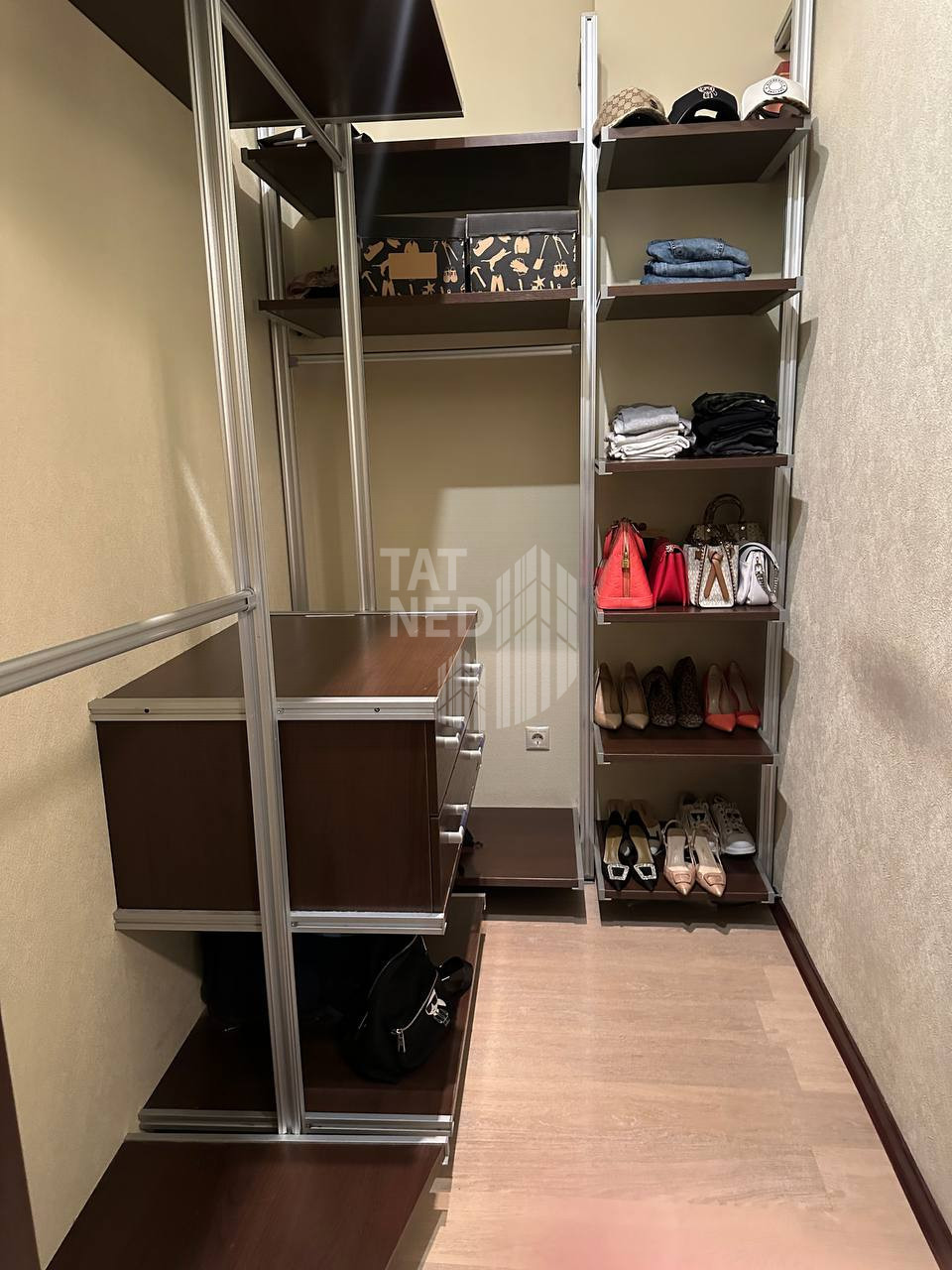 На первом уровне квартиры расположены гостиная, отдельная кухня-столовая, спальные комнаты. Две гардеробные комнаты с оборудованными местами хранения. Площадь гостинной позволяет выполнить перепланировку, добавить зону рабочего кабинета.