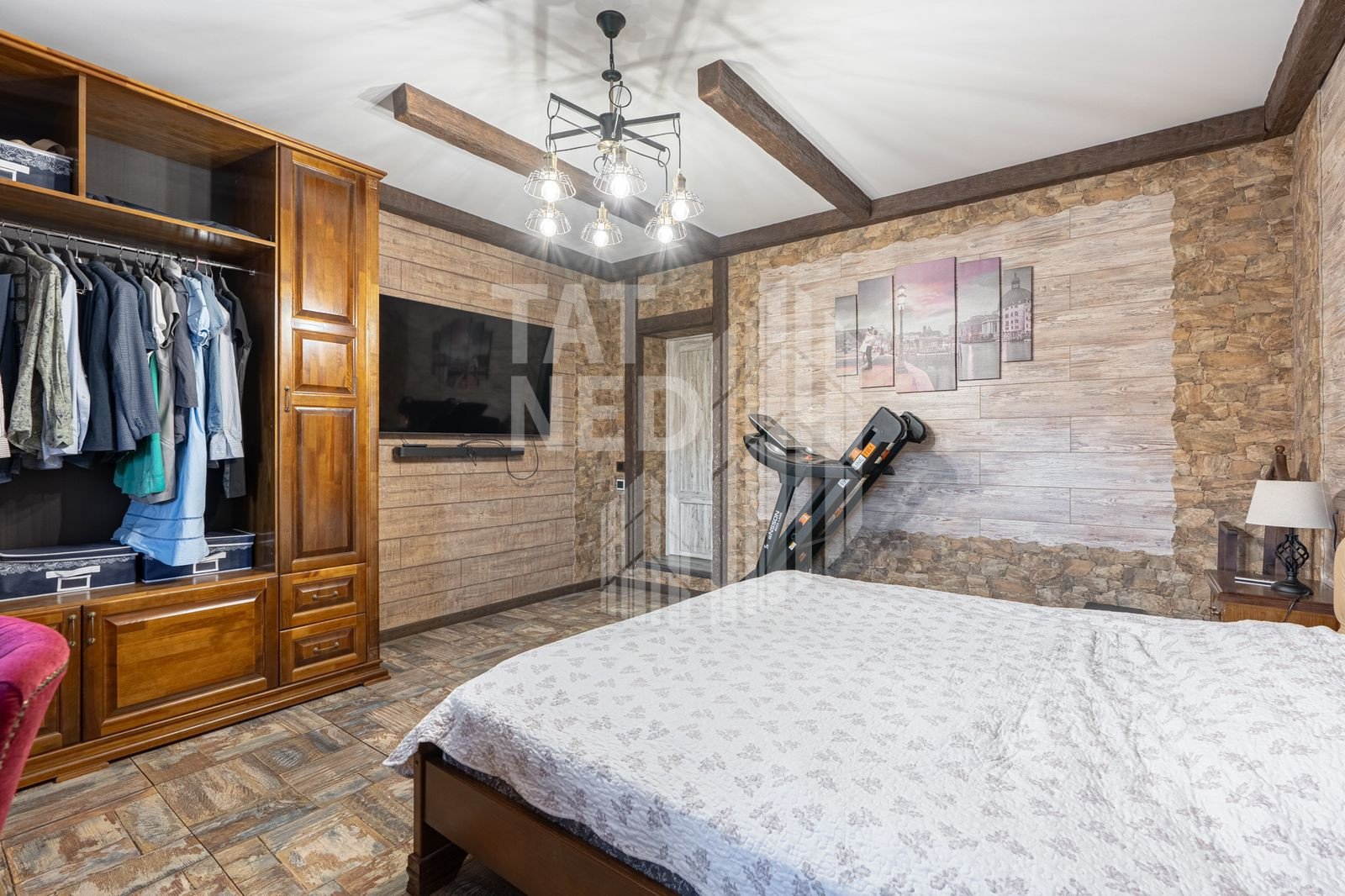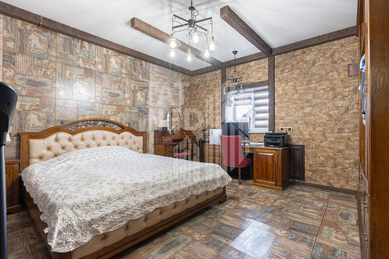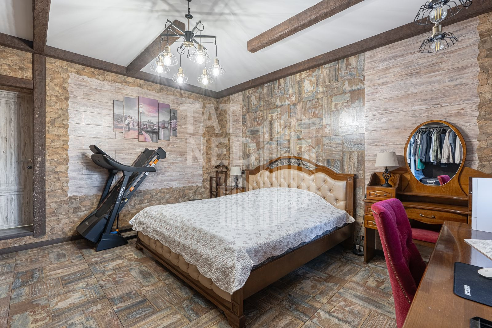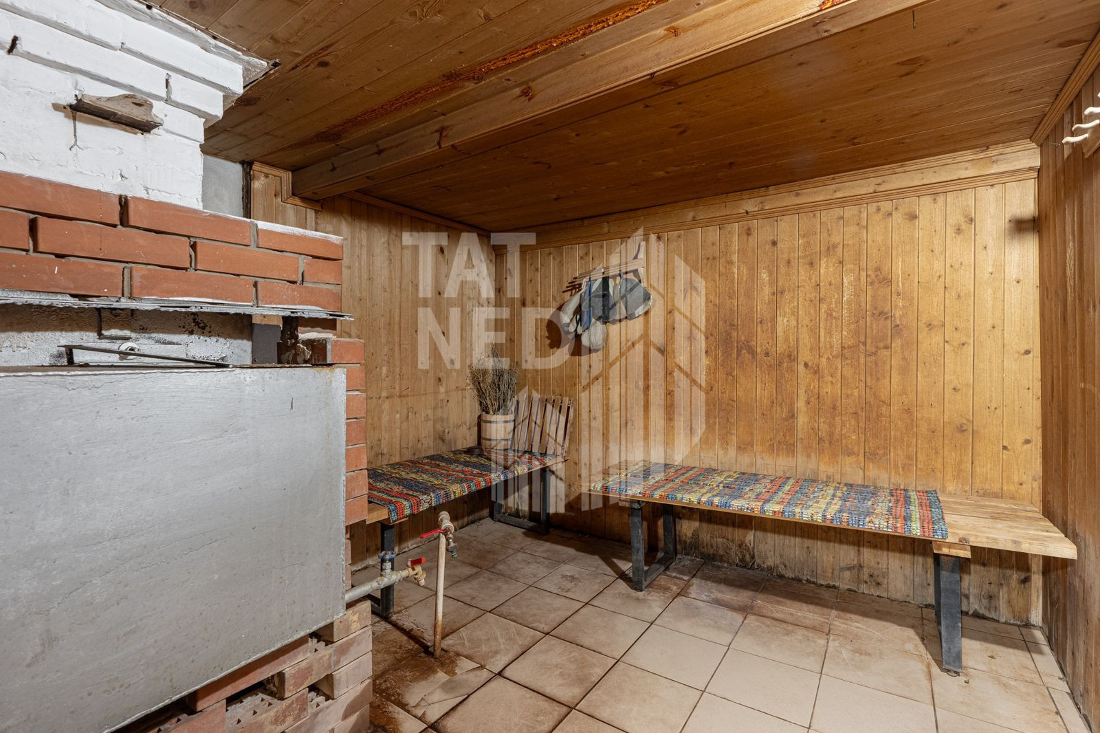 На территории имеются также дворовые постройки – баня на дровах для настоящих ценителей, закрытая беседка с зоной барбекю, хозяйственный блок и даже собственная столярная комната.