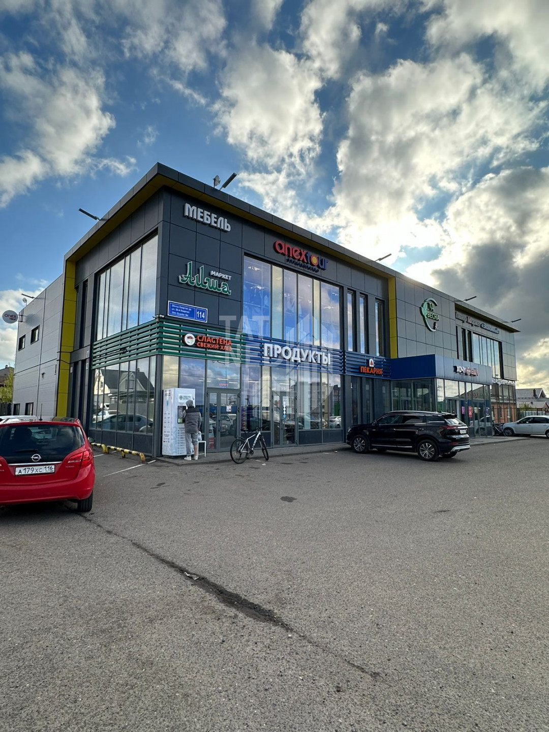 Арендаторы: Улыбка радуги, Экономный (гипермаркет), Wildberries, Магазин табачной продукции, Аиша (магазин), Маг. корейских салатов, маг. аксессуаров для моб устр-в связи, Sv-мебель, Anex tour, маг. кондитерских изделий, Россия (банкомат), Zerno (кофейня), Живая вода (водомат), Фламинго (дет. маг.), Ателье, Oriflame (косметика), шиномонтаж, шаурма, Лепёшки, автозапчасти, Халяль маркет, Возьми DVE (молочн. коктейли), ХочуЕщё (алко)