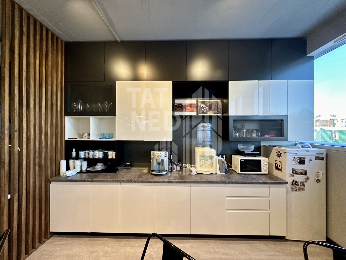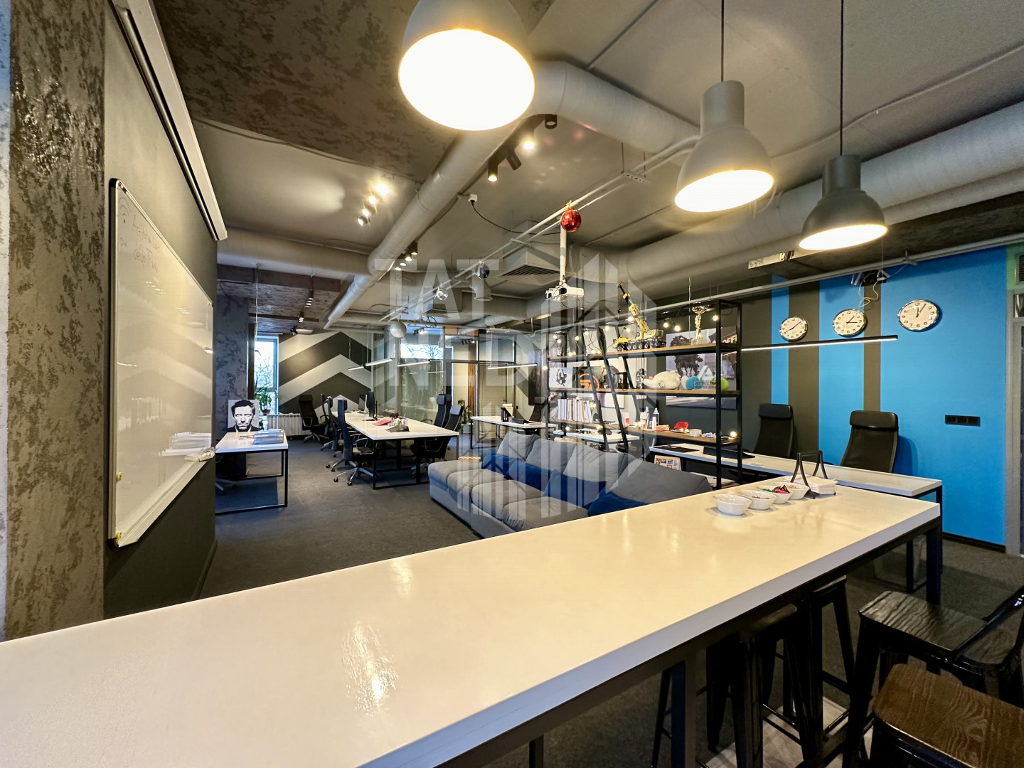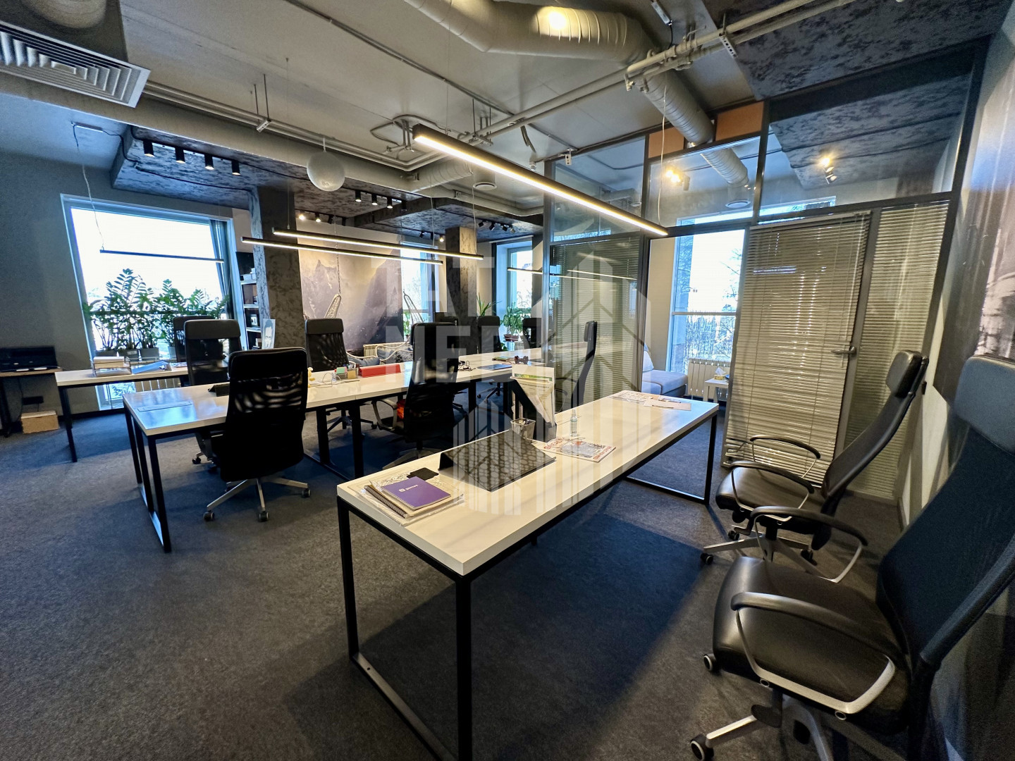 - формат Опен спейс, с большими панорамными окнами.