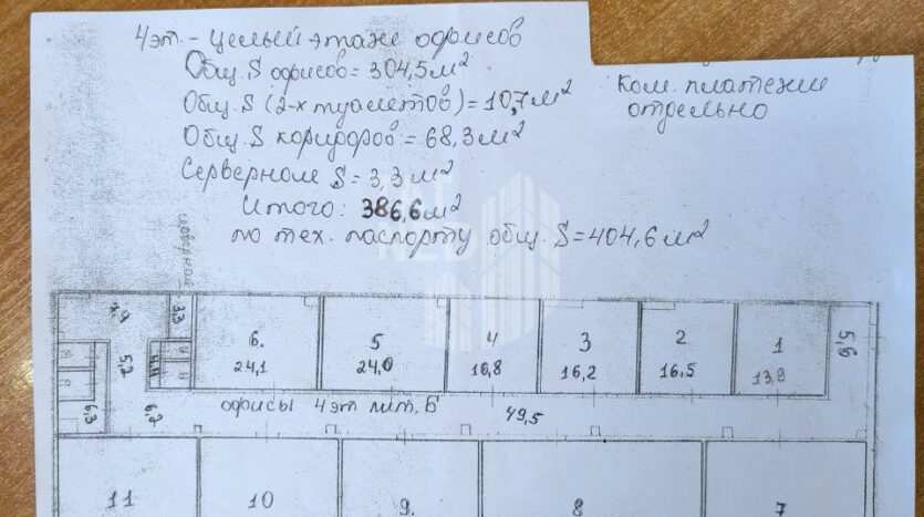 29 кабинетов с окнами, 40% мокрые точки.