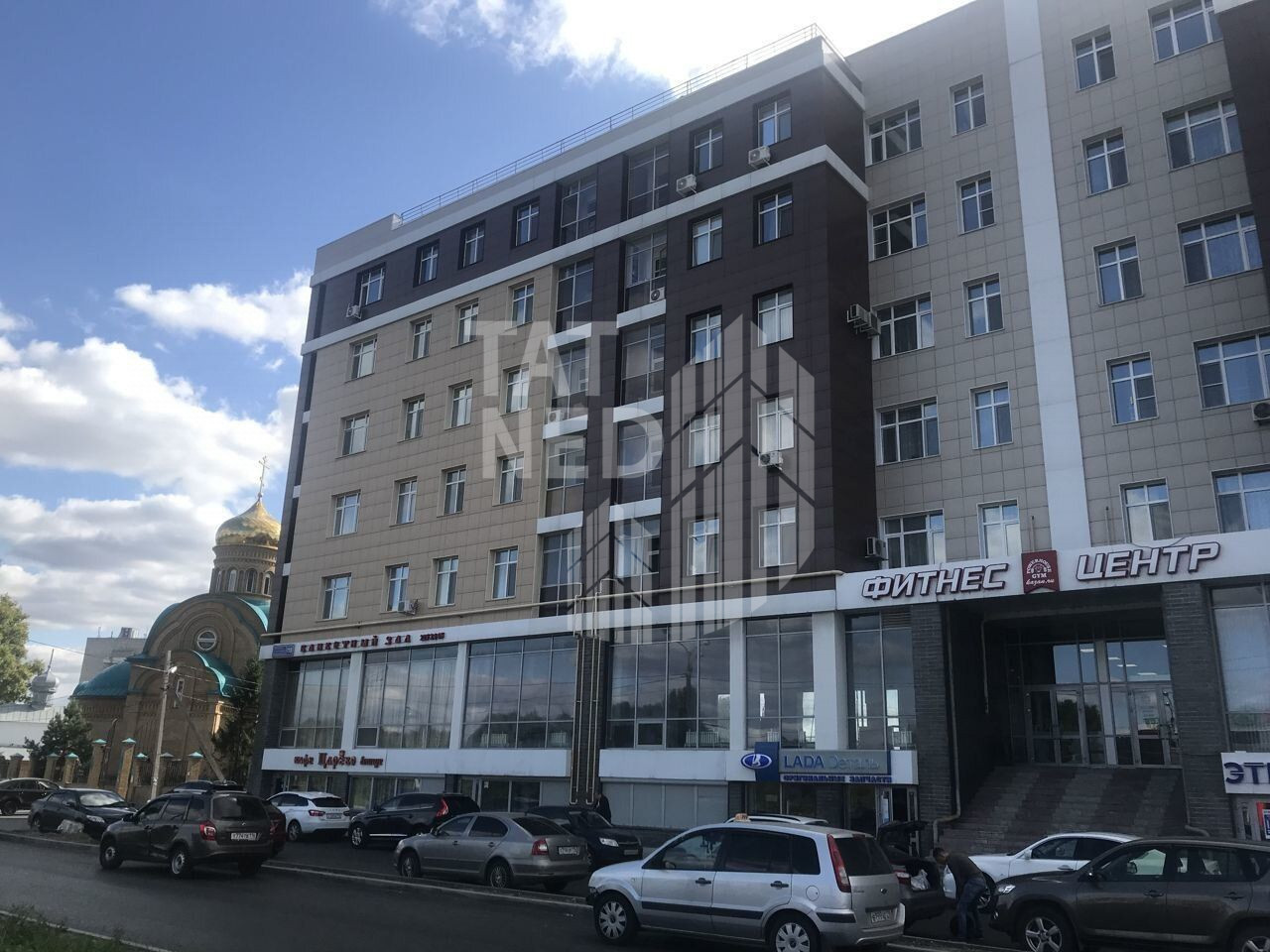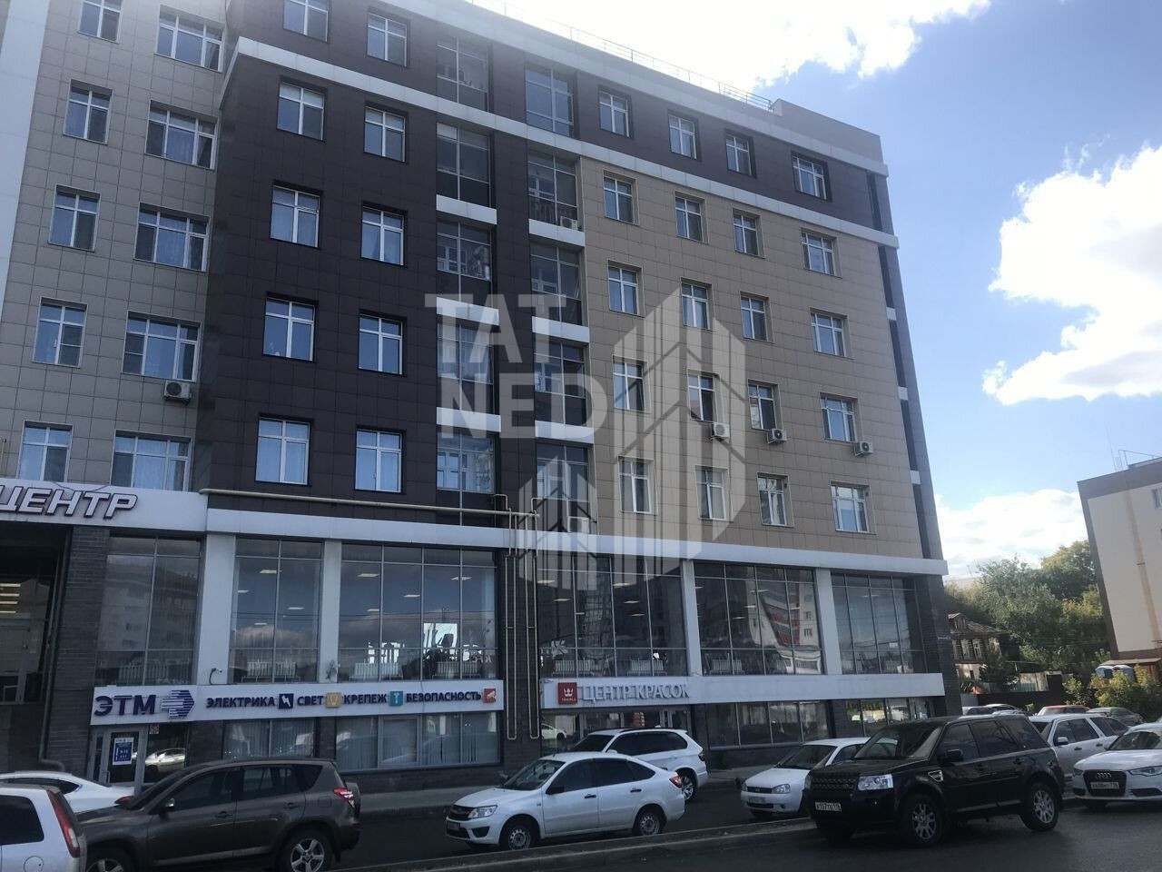 Наличие парковки, а так же парковочных мест вдоль центрального входа. Высокий первый этаж с полным витражным остеклением ” в пол” по всему фасаду, собственный центральный вход и остекленная входная группа.