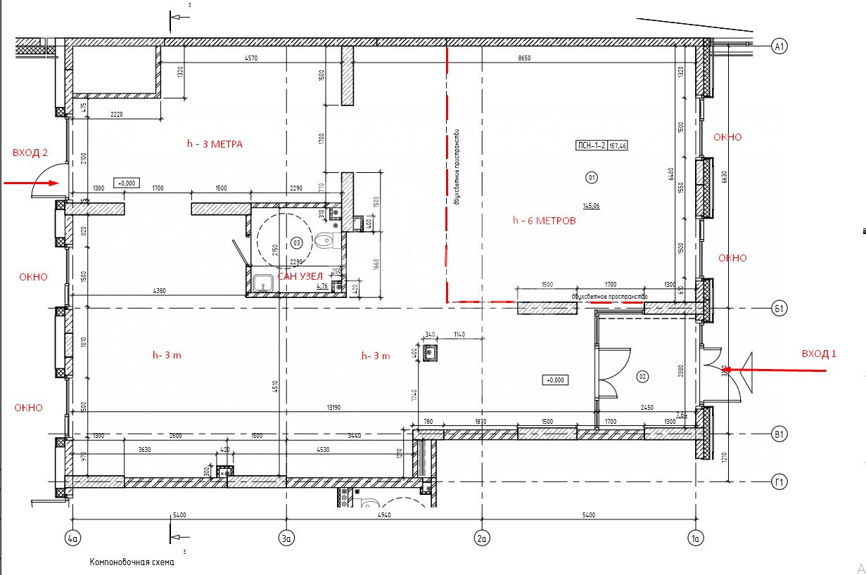 - Высокий метраж потолков ( 6 метров и 2,75 м) разноуровневая, внимательно смотрим планировку – всё указал