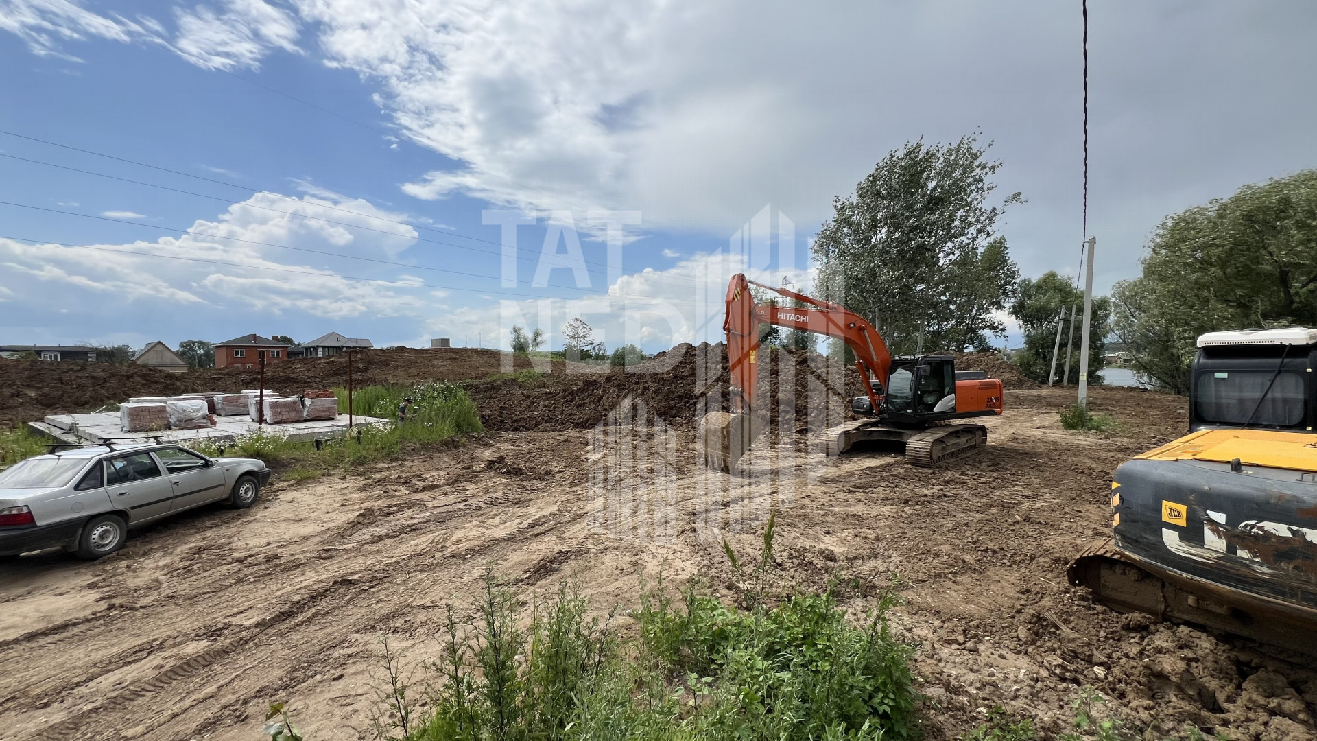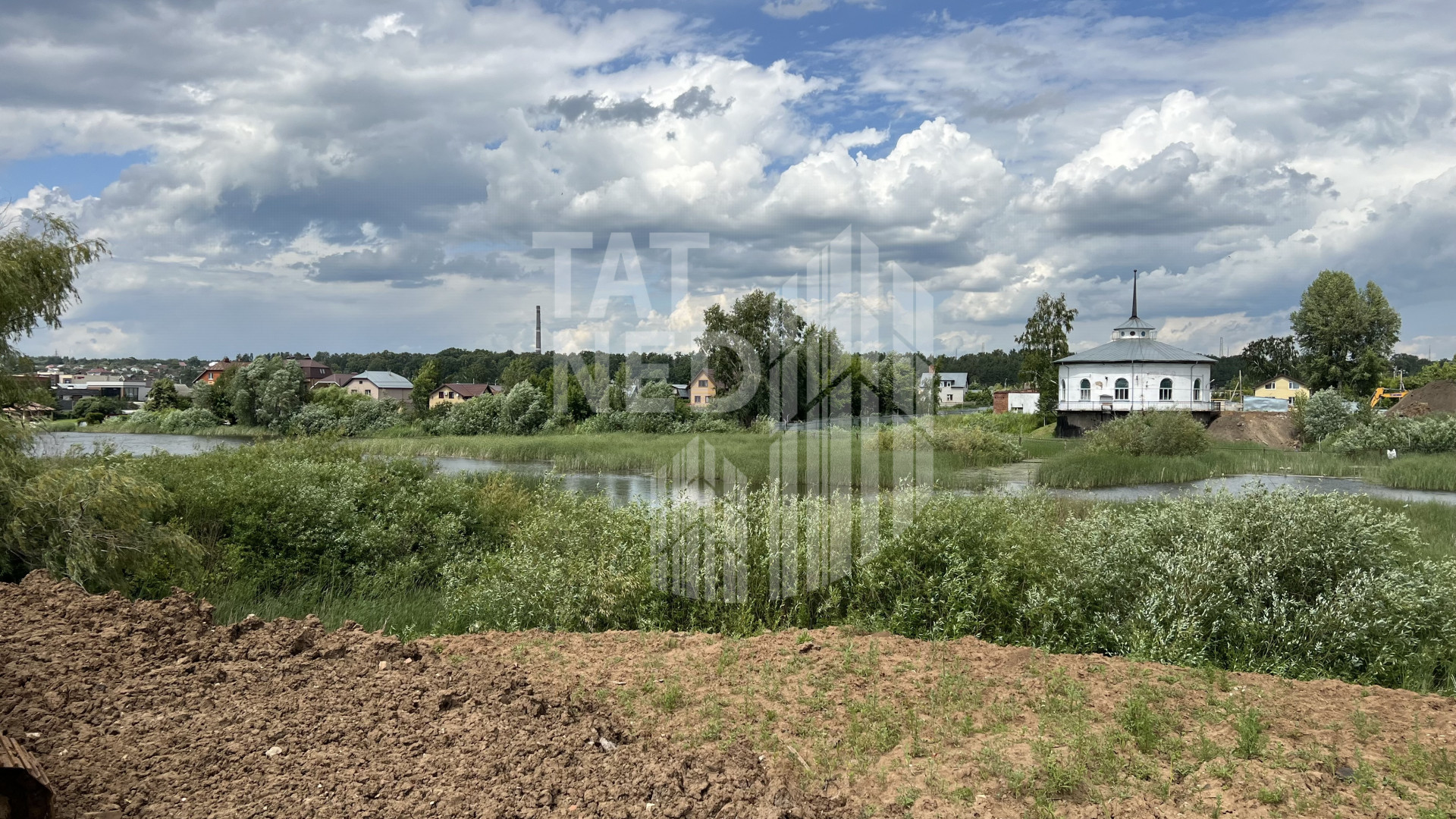 Проведено берегоукрепление, завезен грунт, электричество.